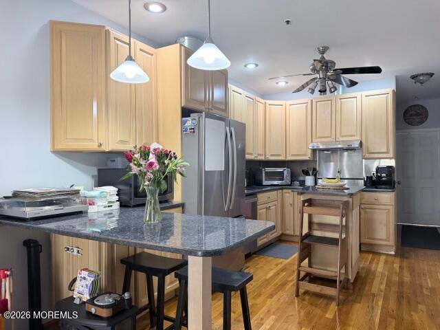Welcome home to this beautifully renovated,light-filled brownstone-style condo in the heart of Hoboken. This space offers an ideal layout for both everyday living and entertaining. The updated open kitchen features granite countertops,stainless steel appliances,a Viking cooktop and stove,dishwasher,microwave,and a convenient breakfast bar that opens seamlessly into the living space. The spacious living room is highlighted by high ceilings,track lighting,and hardwood floors that run throughout. Step outside to your private oversized balcony,a rare and coveted feature,perfect for morning coffee or evening unwinding. Additional conveniences include an in-unit washer and dryer,generous closet space,and private basement storage. The spacious bathroom continues the home's clean,well