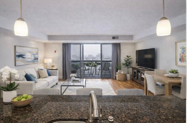 Enjoy incredible views of the New York City skyline from this beautiful 2-bedroom, 2-bath residence at the luxurious Sky Club. Relax in the spacious living and dining area or sit out out on your private balcony and take in the stunning skyline views. The kitchen features granite countertops, stainless steel appliances, dishwasher, and microwave. Additional highlights include hardwood floors throughout and a convenient in-unit washer and dryer. The full-service Sky Club offers 24-hour concierge service, a shuttle to and from the PATH, and garage parking available for an additional fee. Ideally located near bus transportation, the light rail, parks, schools, daycares, dog park, shops, and more. Experience comfortable living in one of Hoboken’s most desirable communities, The Sky Club..