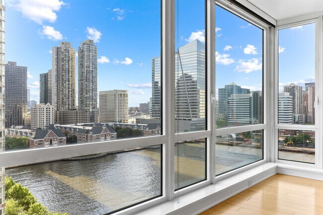 In Jersey City’s Premier Luxury Waterfront Building, Crystal Point! Floor-to-ceiling windows floods the home with natural sunlight. Top-of-the-line kitchen with Jenair appliances, Italian cabinetry and quartz countertops. The luxurious bath features double vanities, stand-up shower and a soaking tub. Wide plank hardwood floors, in-unit washer/dryer, custom window treatments and plentiful closet space. Custom closets at the entrance and bedroom. One valet parking spot included. The building features 24-hour concierge, state-of-the-art fitness center, jacuzzi, sauna, steam room, playroom, resident lounge, conference room, screening room, outdoor pool, barbecue, roof deck, plus much more! Conveniently located between the Newport & Exchange Place PATH. Blocks from the ferry, light rail, supermarket, restaurants and shops.