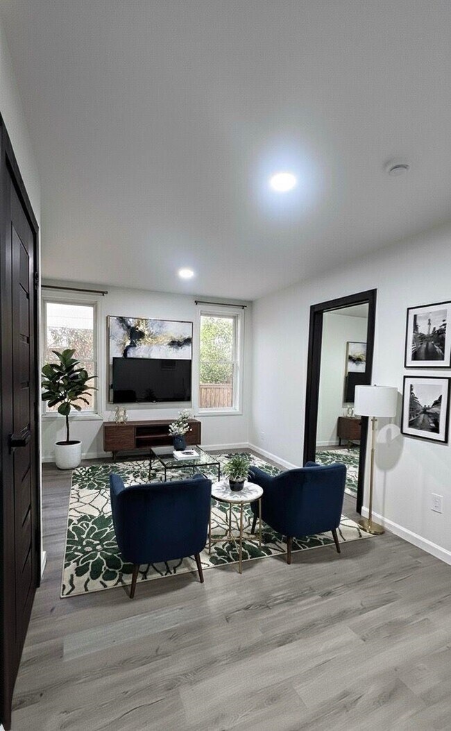 Stunning 2-Bedroom, 1-Bath Meticulously renovated Luxury Apartment with Designer Finishes Experience modern luxury in this completely renovated apartment featuring high-end finishes throughout. Property Highlights: Beautiful gray-toned luxury plank flooring flows seamlessly throughout. The gourmet kitchen boasts sleek gray shaker cabinetry, white quartz countertops, designer backsplash, and brand-new stainless steel appliances including dishwasher ,refrigerator, gas range, and microwave.Stackable washer/dryer available (+$100/month) The open-concept living space is bathed in natural light, perfect for relaxing and entertaining. The spacious primary bedroom features an upholstered channel-tufted headboard and elegant lighting. Stylish black-framed doors and contemporary recessed lighting add modern sophistication throughout. Bus stop around the corner. Close to Garfield Ave light rail. Don’t miss the opportunity to make this modern luxury rental your new home!