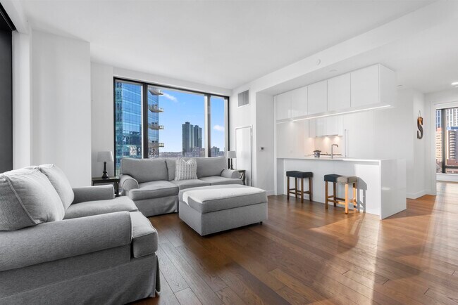 Available for immediate move in. Sunny and recently constructed corner unit home with east, west and south facing floor to ceiling windows in a doorman amenities building. Enjoy luxury living with amazing amenities and city, marina and water views from this pristine one bed one bath located on the 11th floor of NJ's tallest highrise. Living here you will be just a short stroll from the waterfront promenade, the Exchange Place Path, the NY Waterway Ferry and everything Downtown Jersey City has to offer. This recently constructed home is perfect for those looking for convenience, comfort and class. Take in the great views while also having easy access to unparalleled amenities such as a 80x50 heated swimming pool with outdoor cabanas, fitness center, spa with a jacuzzi and sauna, simulated golf room, screening room, outdoor dog run, landscaped lawn, business center, alfresco dining spaces, game room, grilling stations, electric car charging stations, club room and covered drive up entrance. Parking avail for addtl fee at indoor garage next door. Home has power custom blinds installed and in unit washer dryer. Amenities included with rent. Available for immediate move in. Video and virtual tours available upon request. Security deposit, renter's insurance and credit and background check required.