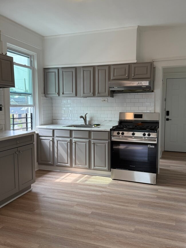 2 bedroom 1 bathroom apartment on the second floor. Newly renovated with updated kitchen, bathroom living room and bathroom. Tenant pays for all utilities including water, sewer, gas, electric and trash, 1 off street parking is included.