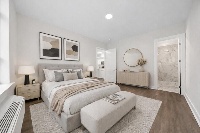 Beautifully designed 1 bedroom, 1 bath residence at The Marq, 119 Peter Street, offering a modern open concept layout with wide-plank hardwood floors, oversized Pella windows with custom solar shades, and premium finishes throughout. The contemporary kitchen features waterfall quartz countertops, Samsung stainless steel appliances, soft close cabinetry, and recessed lighting, while the spacious bedroom offers ample closet space and a full-size in-unit washer and dryer. Residents enjoy access to a Mircom mobile entry system, secured package room, fitness center, bike storage, and optional indoor parking. Ideally located in Union City just minutes from Manhattan with frequent bus service and easy access to major highways, tunnels, ferries, and rail, this home combines comfort, style, and unbeatable convenience!