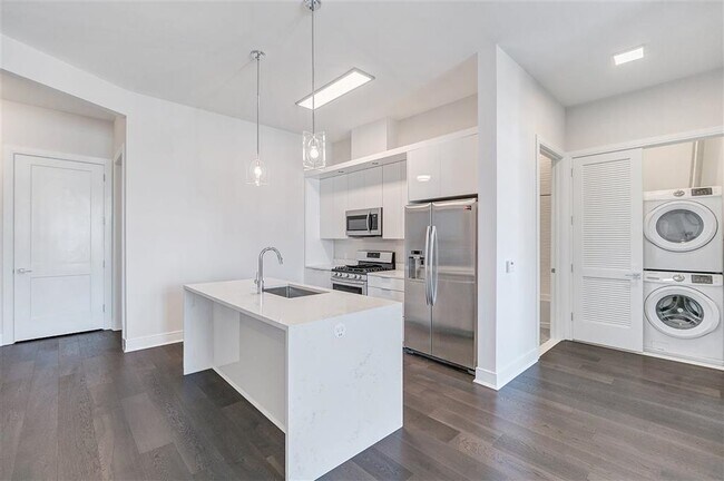 Available 4/5 There’s more to life at 119 Peter Street than first impressions. What meets the eye is a boutique building that stands out from the rest with its polished, yet classic exterior. A soaring ceiling and ultramodern chandelier welcome visitors to your secure lobby. The 6-story building features a Mircom mobile entry system, indoor parking available with 1 or 2 spaces per unit, bike racks, secured package room, and fitness center. The kitchen is where the heart of your home is. Finished with waterfall white quartz countertops and equipped with state-of-the art Samsung stainless steel appliances, ample soft-close cabinetry, and recessed lighting, every kitchen is a chef’s dream. Our oversized bedrooms offer huge closets to hold your laundry, fresh from the full-sized washer/dryer in each unit. Expansive views of the city are available on higher floors, and every home benefits from thoughtfully chosen construction materials to assure privacy and comfort. All units boast grand scale Pella windows with custom solar shades, high-efficiency heating and cooling systems, and gorgeous LED light fixtures, including illuminated mirrors in the luxury baths. You will love coming home to spacious, well-lit hallways, wide-plank hardwood floors, and your beloved pets (allowed with a few restrictions). Offering a bus to Manhattan every three minutes, Union City is a hop to Madison Square Garden (22 minutes), a skip to Chelsea Market (30 minutes), and jump to the New York Stock Exchange (40 minutes). Easily access all major highways north, south, and west, as well as bus and ferry service, LightRail, Lincoln Tunnel, and George Washington Bridge. Surrounded by an extensive transportation, business and commercial hub, you’ll be steeped in a unique urban experience as a Union City resident. *pictures may be of similar unit*