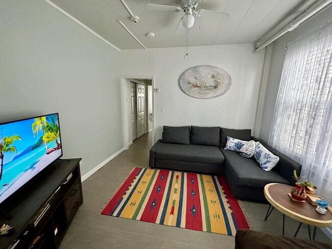 Fully furnished short term rental. Also available for weekly rental. Great location! Private first floor one bedroom apartment in the center of Ventnor. A few feet from the bay and a 5 minute walk (2 blocks) to the beach and Boardwalk. Within walking distance you will find all of the conveniences you need for a great vacation including the beach, boardwalk and bay, as well as 7 restaurants and breakfast places, a movie theater, nail salon and Wawa. High ceilings and cheerfully decorated. Welcoming neighborhood and quite at night. * Sleeps 3 - Bedroom: King Bed & Living Room: Sofa Bed * One private driveway parking spot and street parking available * Beach badges included * Linens and towels included * Easy keypad check in