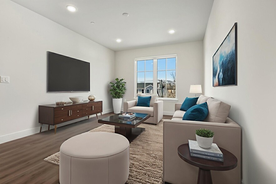 Our pet-friendly residences feature spacious floor plans with high ceilings, thoughtfully designed to maximize natural light and style. Each home is equipped with a modern kitchen showcasing a full stainless steel appliance package, plus the added convenience of an in-unit washer and dryer.