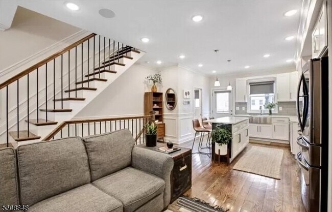 Located just one block away from a NYC Port Authority bus stop! There is a perfect blend of modern elegance and convenience in this beautifully renovated 2-bedroom, 1.5-bathroom home. This row home, updated in 2018, features an open-concept first floor with a living room and eat-in kitchen, complete with stainless steel appliances, custom white wood cabinets, and a quartz island. Enjoy seamless indoor-outdoor living with access to a gorgeous fenced-in yard, deck, and patio. Upstairs, the primary bedroom boasts California Style" closets, while the second bedroom and full bathroom offer additional comfort. Highlights include hardwood floors, high ceilings, individually controlled AC/heat units, a video intercom system, home theater speakers, electric car charger and front/rear camera security system. The finished basement provides additional living area, extra storage and a laundry room. With a quick 10-minute commute to Midtown NYC, this home offers the ultimate urban convenience in a serene setting. Come enjoy your full home and roll out of bed and be to NYC in 10 minutes!"