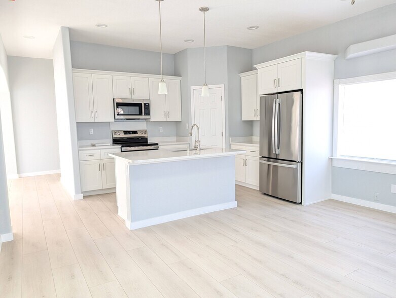 Discover this beautifully updated 2-bedroom, 2-bathroom rental, offering a bright and spacious open-concept living area with soaring high ceilings. The kitchen boasts a convenient island, perfect for entertaining or casual meals.