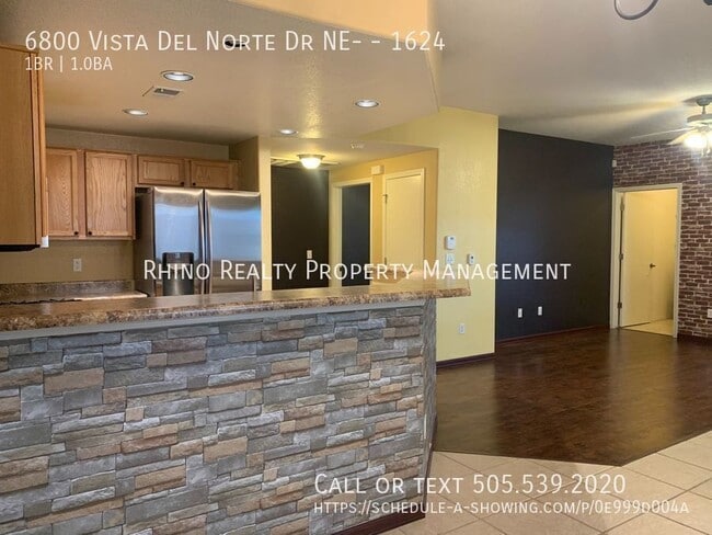 Located in Rancho Mirage, this beautiful 1 bedroom, 1 bath, 2nd floor condo is tucked away in a gated community. Closest intersection is Osuna & Vista Del Norte. I-25 is approximately 1.5 miles away. It has vibrant paint schemes, designer window coverings, and an open floor plan! There's an incredible mountain view from the private covered balcony and prime reserved parking space and garage right in front of unit. Vista Del Norte Park, Bernardo Trails Park, and Paseo De Estrella Park are not far. Close businesses, shops, and restaurants have Extra Space Storage, Vic's Daily Cafe, Milly's, Starbucks, Cracker Barrel, Denny's, Sprouts, Scarpas, Cliff's Amusement Park, Panera Bread, and P.F. Chang's. Nearby schools include, Mission Avenue Elementary, Taft Middle, and Del Norte High. Please call to schedule a viewing! Utilities: PNM & NM Gas in resident's name. $50 monthly water charge. Pet Policy: Be one (1) small, orderly domestic pet per unit; either be a dog, cat, caged bird, reptiles or a fish Weigh no more than 20 lbs. and is not taller than 17 inches when measured from the ground to the pets withers for four legged mammals, or an equivalent for other pet Be restricted at all times by either a leash no longer then eight feet long or secure electronic leash accompanied by an adult capable of controlling the pet or contained in a pet carrier when in any common areas Not to be determined to be a “dangerous dog” according to the Albuquerque Code of Ordinances known as Angel’s Law Not be a pit bull or pit bull mix Not be permitted to jump on other residents Vehicle/Parking Policy: Limit 2 Vehicles Assigned Potential Tenancy Fees: Please call to schedule a viewing! 1 Car Garage 2nd Floor Unit Assigned Parking Spot Close To Freeway Community Gym Community Pool Covered Balcony Gated Community Kitchen Bar Top Open Floorplan Refrigerated Air Washer/Dryer Water Wood Flooring