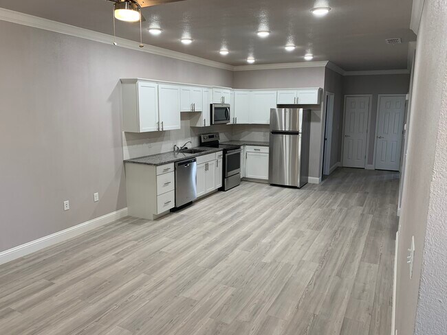 Newly built duplex on the quiet East side of Clovis - 5 minutes from Prince St., 5 minutes from Clovis Regional Airport, and only 20 minutes from Cannon AFB! Unit includes 2 bed, 2 full bath, and large, private 2 car garage with electric garage door openers/remotes as well as 4 additional parking spots in driveway. Backyard is enclosed with high privacy/style and wind resistant block fencing. Entire property is "zero-scaped", requiring minimal lawn care other than weed removal/prevention. Kitchen includes refrigerator, dishwasher, stove/oven, and built in microwave as well as dual sinks. Unit also has laundry room with washer/dryer hookups.