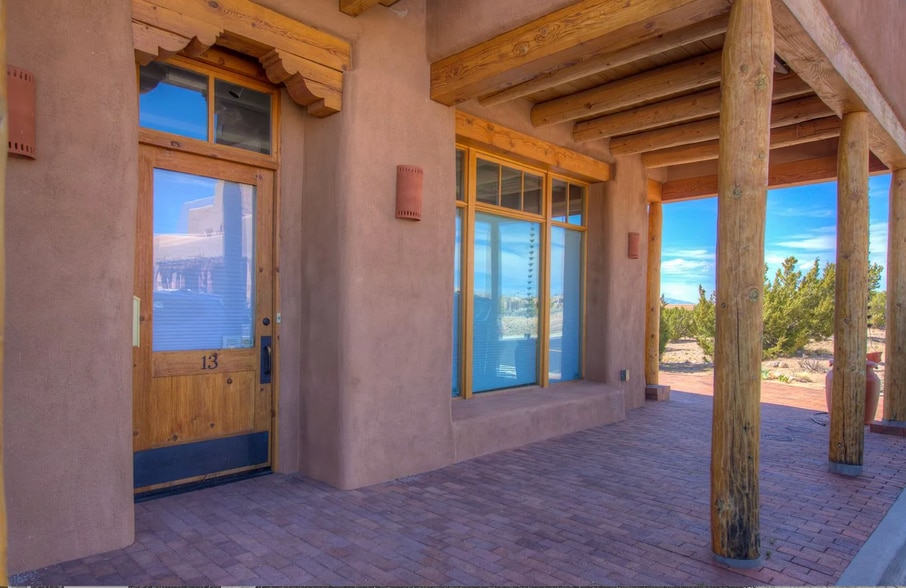 Stunning commercial/studio/live/work space located in the quiet Aldea de Santa Fe just north of 599 only 10 minutes drive to the Plaza. The flexible space comprises approximately. 2000 sq. ft, and features two bedrooms/offices, one full bath, one 1/2 bath, full kitchen with granite tops and stainless appliances, and a large multi-purpose living/dining/entertainment room, with huge windows.