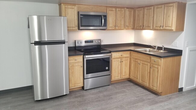 $1100 per month including utilities for a new one-bedroom apartment with a washer/dryer. Newly renovated in the basement of a well kept building in a quiet residential neighborhood steps from downtown. New composite floors throughout. Modern kitchen with new cabinets and countertops, stainless steel stove, microwave and refrigerator. New bathroom including extra large shower, new flooring, new toilet, vanity, sink and medicine cabinet. Bedroom is large enough for a queen size bed and dresser. Access to backyard. Application and background check required along with one year lease. Sorry, no pets allowed. Smoking is not permitted inside or within 100 feet of the premises.