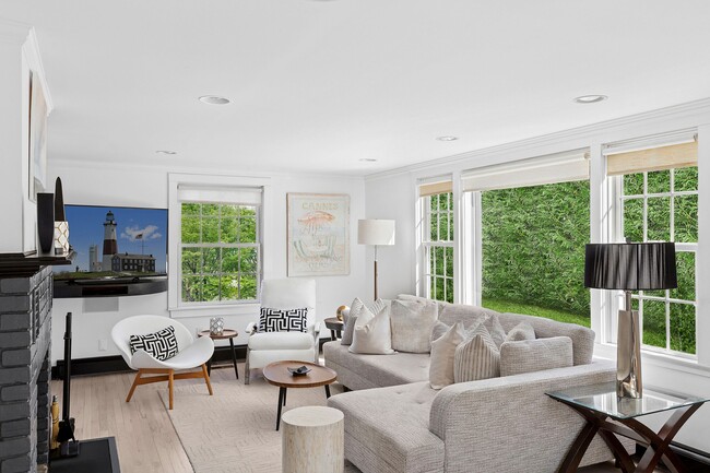 Renovated both inside and out, this beautiful Amagansett Dunes cottage has it all! Located just around 400 feet to ocean beach walkway, this charming house has just been completely landscaped including a brand new lawn, blue stone patio in back with all new outdoor furniture including dining table and chairs, gas BBQ, and entertaining area with sofa and chairs. The new blue stone walkway leads both around the house and heated pool. Pristine and recently updated, the interior first floor includes living room with fireplace and large screen TV, kitchen and dining area that overlook the back patio, a full bathroom, den/office with sofa sleeper. Separated for privacy, the large primary ensuite bedroom opens to an expansive deck with heated pool, lounge chairs and second entertaining area. The second floor includes two additional guest bedrooms, 1 with Queen bed, the other with twin beds, and a full guest bathroom. [[Rental Registration # 24-1987]] EH RR #: 24-1987 Rental Terms: Memorial Day - Labor Day: $160,000 June: $30,000 July: $65,000 August - Labor Day: $75,000