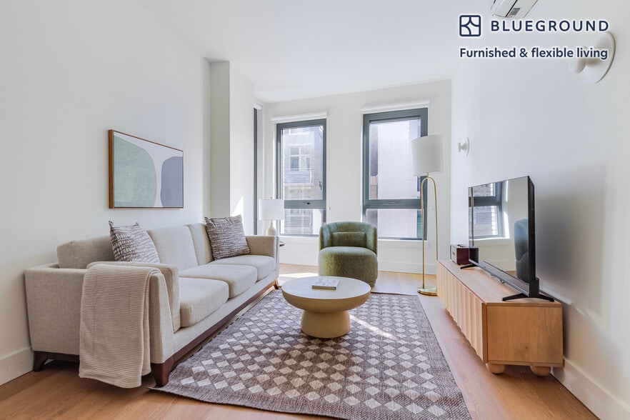 Feel at home wherever you choose to live with Blueground. You’ll love this comfortable Williamsburg furnished one bedroom apartment with its modern decor, fully equipped kitchen, and exquisite living room. Ideally located, you’re close to all the best that New York has to offer! (ID #NYC2205) The advertised rate of $4,930/month is the lowest available price, based on a 12 month(s) stay with a move-in date of March 10, 2026. Rates vary depending on the duration of stay, season, and other parameters. For exact pricing and additional pricing components, please visit our website and enter your desired move-in and move-out dates. The rate is applicable when billed upfront; it can be higher if billed in multiple payments. Brokers are welcome to reach out. Were you looking for an unfurnished lease? Try Blueground instead and upgrade from unfurnished to furnished living: - Furnished at rates comparable to unfurnished - No setup or furniture costs - save thousands - Move-in ready - save time, just bring your suitcase Designed with you in mind Gorgeous furniture, fully equipped kitchen, smart TV, and a premium wireless speaker are just a few of the amenities you’ll find inside this one bedroom apartment. Ideally located in New York, you’ll find a lot to love outside as well. When you’re ready to relax, you’ll be happy to discover every Blueground bedroom comes with superior quality mattresses, fully stocked linens, and cozy towels. We handle everything so you can simply show up and start living. This apartment also offers in-apartment laundry. Sleeping arrangements Queen Bed, 63in/160cm Amenities Building amenities unique to this one bedroom apartment include an on-site: - Dryer - Elevator - Washing machine - Lounge - Pets allowed - Rooftop BBQ Arrival and ongoing support The entire apartment is yours to enjoy! Throughout your stay, you’ll have access to our Client Experience team through the Blueground App. You can schedule additional cleanings, submit maintenance requests, and view our neighborhood recommendations with just a few taps. We’ll share all details upon confirmation of your stay. Ideally Located This furnished apartment is situated in Williamsburg, known as Brooklyn’s creative outlet. Residents vary from artists and young professionals working in the media or entertainment industries to families. Williamsburg Bridge is great for long strolls, running or biking. Over the weekend, visit Bedford Avenue, which is constantly buzzing with trendy boutiques, fine dining, outdoor day parties and a thriving music scene. East River State Park also offers a great sunset over the Manhattan skyline. Embarking on the L train, you can be in the heart of Manhattan in just a few minutes. Also the M and J trains make it easy to get to other downtown neighborhoods. Other things to note Building amenities may have an extra cost. This Blueground apartment has flexible lease options, allowing you to book it for one month, a year, or more. Pets are welcome, though weight limits and breed restrictions apply and may incur fees. Brokes CYOF. We take great pride in ensuring every photo displayed is shot in our own units with our actual furnishings. That said, we regularly refresh our decor and furniture arrangement, which may differ from what’s pictured. [SI]