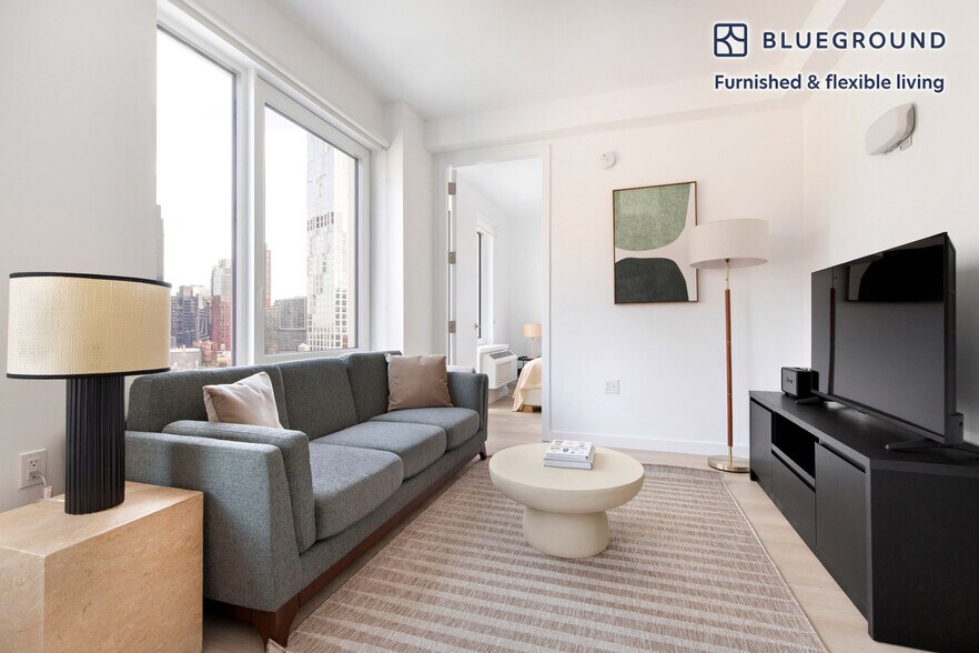 Discover the best of New York, with this one bedroom apartment in Downtown Brooklyn. It’ll be easy to simply show up and start living in this elegantly furnished apartment with its fully equipped kitchen, stylish living room, and our dedicated, on-the-ground support. (ID #NYC2213) The advertised rate of $4,090/month is the lowest available price, based on a 8 month(s) and 6 day(s) stay with a move-in date of May 17, 2026. If you’re looking for a 1-year stay, the rate is $4,120/month. Rates vary depending on the duration of stay, season, and other parameters. For exact pricing and additional pricing components, please visit our website and enter your desired move-in and move-out dates. The rate is applicable when billed upfront; it can be higher if billed in multiple payments. Brokers are welcome to reach out. Were you looking for an unfurnished lease? Try Blueground instead and upgrade from unfurnished to furnished living: - Furnished at rates comparable to unfurnished - No setup or furniture costs - save thousands - Move-in ready - save time, just bring your suitcase Designed with you in mind Gorgeous furniture, fully equipped kitchen, smart TV, and a premium wireless speaker are just a few of the amenities you’ll find inside this one bedroom apartment. Ideally located in New York, you’ll find a lot to love outside as well. When you’re ready to relax, you’ll be happy to discover every Blueground bedroom comes with superior quality mattresses, fully stocked linens, and cozy towels. We handle everything so you can simply show up and start living. This apartment also offers in-apartment laundry. Sleeping arrangements Queen Bed, 63in/160cm Amenities Building amenities unique to this one bedroom apartment include an on-site: - Doorman - Dryer - Elevator - Washing machine - Lounge Arrival and ongoing support The entire apartment is yours to enjoy! Throughout your stay, you’ll have access to our Client Experience team through the Blueground App. You can schedule additional cleanings, submit maintenance requests, and view our neighborhood recommendations with just a few taps. We’ll share all details upon confirmation of your stay. Ideally Located This furnished apartment is located in Downtown Brooklyn, one of the borough's most sought-after neighborhoods. The bustling area is characterized by both office towers and residential buildings, so there's a wide variety of restaurants serving cuisine from all over the world, night and day. Downtown Brooklyn is also the site of the Brooklyn Academy of Music, a cutting edge arts complex, and it's an easy walk to the foot of the famous Brooklyn Bridge. The neighborhood is served by several subway lines and bus routes, making it easy to get to Manhattan and the city's other boroughs. Other things to note Building amenities may have an extra cost. This Blueground apartment has flexible lease options, allowing you to book it for one month, a year, or more. Brokes CYOF. We take great pride in ensuring every photo displayed is shot in our own units with our actual furnishings. That said, we regularly refresh our decor and furniture arrangement, which may differ from what’s pictured. [SI]