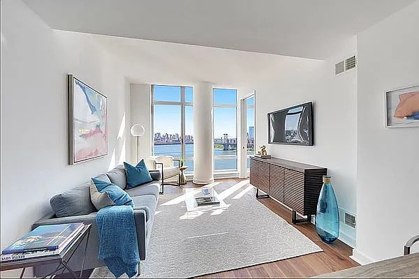 This bright sun drenched 1-bedroom, 1-bathroom home is pearched on the 27th floor at Two Northside Piers, and awards breathtaking open vistas of the East River, Manhattan skyline, the Williamsburg Bridge, and beyond. The highest D-Line in the building, the home has an extra foot of ceiling height – providing a loft-like experience and amplifying the views. The home has had brand new beautiful floors installed throughout. A chef’s kitchen with top of the line appliances including quartz countertops, stainless steel Sub-Zero refrigerator, Bosch dishwasher, cooktop, and oven. A vented washer/dryer completes the package. The views and finishes combine to make this one of the true one bedroom jewels on the waterfront. 2 Northside Piers features one of the most comprehensive amenities packages in the neighborhood and includes a heated indoor pool, hot tub, full-time concierge, sauna, fitness center with PELOTON Bikes, massage/yoga room, children’s playroom, parking garage, refrigerated grocery storage, screening room, lounge, and more. Right outside your door is an incredible 400 foot pier and waterfront esplanade with access to the East River Ferry, a large waterfront park with soccer field and the New Domino Park. The building is central to all the restaurants, bars, hotels, galleries, and everything that has made this one of the hottest neighborhoods in NYC.