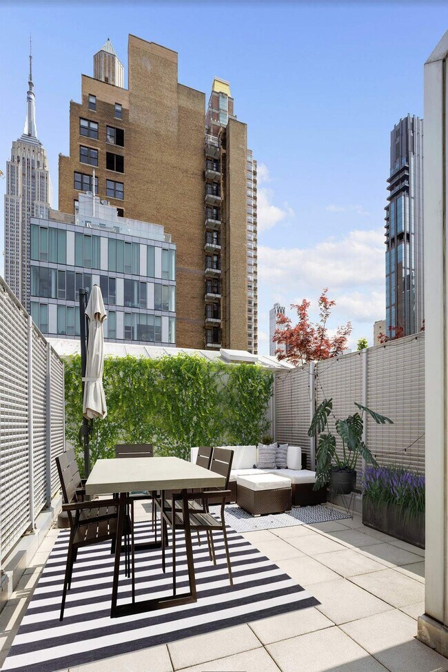 Welcome to the exquisite duplex penthouse at the highly sought-after Grand Madison. This exceptional residence combines elegance and functionality in perfect harmony. Upon entering, you'll be greeted by a welcoming foyer that sets the tone for the entire home. Complete with a full marble bathroom and a versatile bonus room, you have the freedom to customize the space according to your preferences. The seamless flow from the foyer leads you to the expansive living room and dining area, creating an ideal space for relaxation and entertainment. With 11-foot ceilings and generously sized windows, natural light floods the home, creating a bright and airy ambiance. The chef's kitchen is equipped with top-of-the-line Viking appliances, including an oven, 4-burner cooktop, and a refrigerator. The Bosch dishwasher adds a touch of convenience to your everyday cooking experience. As you make your way to the second floor, you'll discover the delightful primary bedroom suite. Adjacent to it is a cozy sitting area that overlooks the beautifully landscaped 418 sqft terrace. Embrace tranquility and enjoy the outdoor oasis that awaits you. The primary bedroom is complemented by custom closets and an exquisite marbled bathroom, adding a touch of luxury to your daily routine. Additional features of this exceptional penthouse include ample storage, a stacked Bosch washer/dryer, and central A/C for your comfort and convenience. The Grand Madison offers more than just a stunning residence. It also provides a prime location and an array of desirable amenities. Benefit from access to a fitness room, a 24-hour doorman, a concierge service, an in-house dry cleaner and tailor, daily housekeeping service, and a full-time superintendent. Experience the epitome of luxury living at the Grand Madison. Rental Terms: Monthly: $12,500