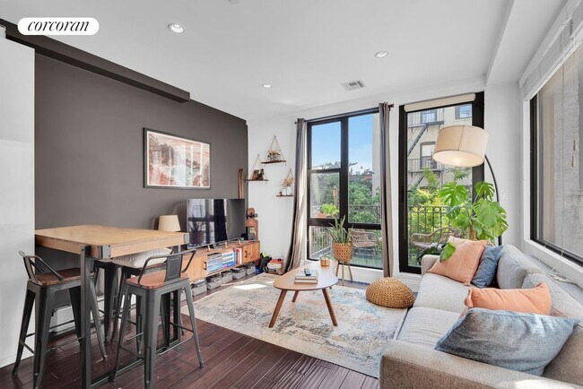 Welcome home to this gorgeous renovated 1 Bedroom, 1 Bathroom apartment with a private balcony, flooded with natural light. Located in the heart of Park Slope, this stunning apartment has a fantastic layout perfect for entertaining.The open eat-in chef's kitchen is equipped with state-of-the-art stainless steel appliances, including a dishwasher, and features granite countertops. The bright living room, with its open floor plan, extends to a lovely balcony overlooking lush greenery. Additional amenities include an in-unit washer and dryer, central air, high ceilings, recessed lighting, and hardwood floors throughout. The primary suite offers a large closet and expansive windows, while the brand-new marble bathroom adds a touch of luxury.Enjoy breathtaking views of the Manhattan Skyline from the spectacular rooftop of this exceptional building. Conveniently located just a short distance from transportation, shops, restaurants, and the beautiful Prospect Park, this apartment offers the perfect oasis.
