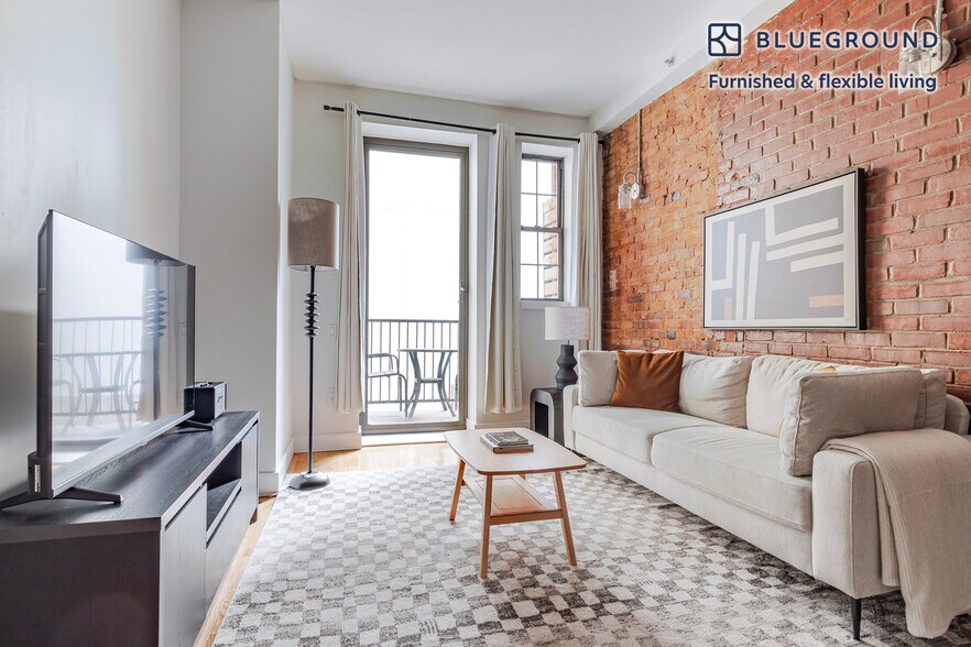 Feel at home wherever you choose to live with Blueground. You’ll love this charming Downtown Brooklyn furnished one bedroom apartment with its modern decor, fully equipped kitchen, and lovely living room. Ideally located, you’re close to all the best that New York has to offer! (ID #NYC2167) The advertised rate of $4,180/month is the lowest available price, based on a 12 month(s) stay with a move-in date of April 11, 2026. Rates vary depending on the duration of stay, season, and other parameters. For exact pricing and additional pricing components, please visit our website and enter your desired move-in and move-out dates. The rate is applicable when billed upfront; it can be higher if billed in multiple payments. Brokers are welcome to reach out. Were you looking for an unfurnished lease? Try Blueground instead and upgrade from unfurnished to furnished living: - Furnished at rates comparable to unfurnished - No setup or furniture costs - save thousands - Move-in ready - save time, just bring your suitcase Designed with you in mind Gorgeous furniture, fully equipped kitchen, smart TV, and a premium wireless speaker are just a few of the amenities you’ll find inside this one bedroom apartment. Ideally located in New York, you’ll find a lot to love outside as well. When you’re ready to relax, you’ll be happy to discover every Blueground bedroom comes with superior quality mattresses, fully stocked linens, and cozy towels. We handle everything so you can simply show up and start living. This apartment also offers in-floor laundry. Sleeping arrangements Queen Bed, 63in/160cm Amenities Building amenities unique to this one bedroom apartment include an on-site: - Dryer of floor - Elevator - Washing machine on floor - Pets allowed Arrival and ongoing support The entire apartment is yours to enjoy! Throughout your stay, you’ll have access to our Client Experience team through the Blueground App. You can schedule additional cleanings, submit maintenance requests, and view our neighborhood recommendations with just a few taps. We’ll share all details upon confirmation of your stay. Ideally Located This furnished apartment is located in Downtown Brooklyn, one of the borough's most sought-after neighborhoods. The bustling area is characterized by both office towers and residential buildings, so there's a wide variety of restaurants serving cuisine from all over the world, night and day. Downtown Brooklyn is also the site of the Brooklyn Academy of Music, a cutting edge arts complex, and it's an easy walk to the foot of the famous Brooklyn Bridge. The neighborhood is served by several subway lines and bus routes, making it easy to get to Manhattan and the city's other boroughs. Other things to note Building amenities may have an extra cost. This Blueground apartment has flexible lease options, allowing you to book it for one month, a year, or more. Pets are welcome, though weight limits and breed restrictions apply and may incur fees. Brokes CYOF. We take great pride in ensuring every photo displayed is shot in our own units with our actual furnishings. That said, we regularly refresh our decor and furniture arrangement, which may differ from what’s pictured. [SI]