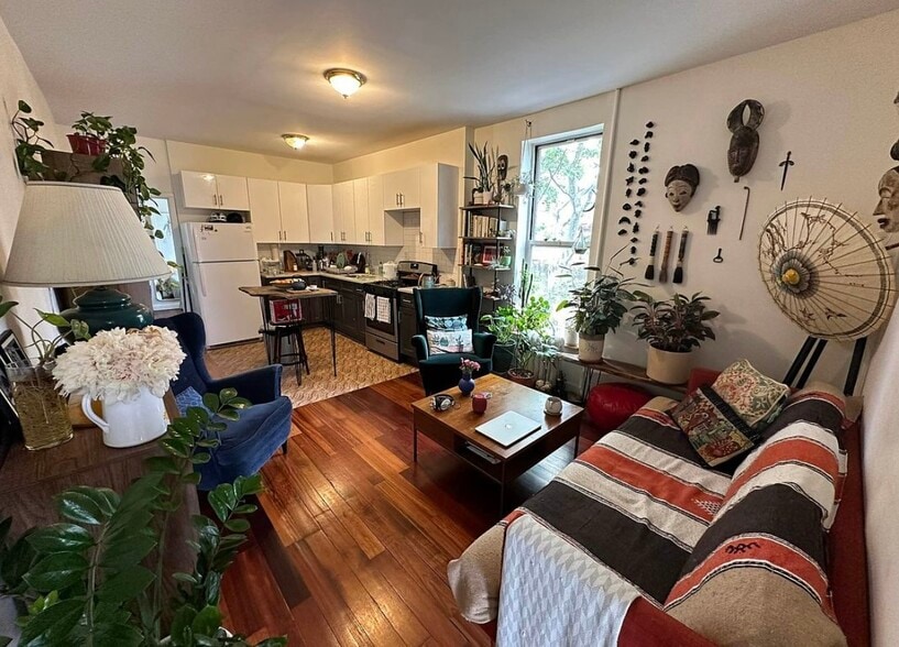 NO FEE!!!! GUARANTORS ACCEPTED!!! Must see 2 Bed 1Bath, spacious living area, eat in the kitchen, spacious bedrooms, hardwood floors, closet space, 1 walk in closet, naturally well-lit. -Subway J M Z -Laundry in the building ( $50 per month additional fee ) -Heat and Hot Water Included