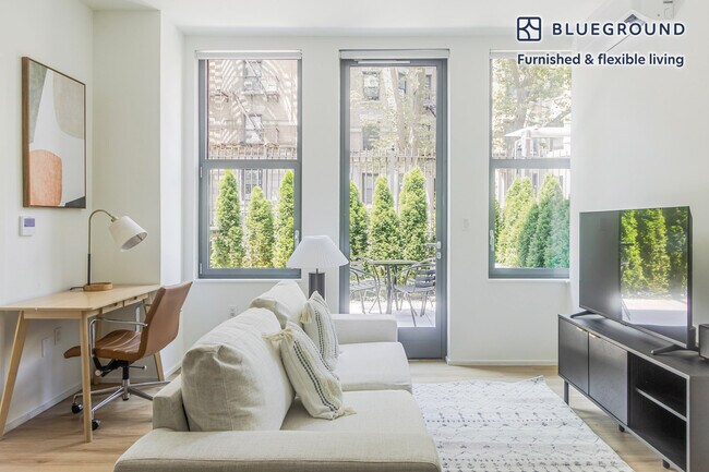 Discover the best of New York, with this one bedroom apartment in Crown Heights. It’ll be easy to simply show up and start living in this elegantly furnished apartment with its fully equipped kitchen, pretty living room, and our dedicated, on-the-ground support. (ID #NYC1935) The advertised rate of $3,380/month is the lowest available price, based on a 11 month(s) and 29 day(s) stay with a move-in date of April 10, 2026. Rates vary depending on the duration of stay, season, and other parameters. For exact pricing and additional pricing components, please visit our website and enter your desired move-in and move-out dates. The rate is applicable when billed upfront; it can be higher if billed in multiple payments. Brokers are welcome to reach out. Were you looking for an unfurnished lease? Try Blueground instead and upgrade from unfurnished to furnished living: - Furnished at rates comparable to unfurnished - No setup or furniture costs - save thousands - Move-in ready - save time, just bring your suitcase Designed with you in mind Thoughtfully designed with bespoke finishes, modern furnishings, and a fully equipped kitchen, you’ll enjoy that “I’m home” feeling with this Blueground apartment. Whether you’re lounging in your beautiful living room streaming the latest and greatest entertainment on the smart TV or premium wireless speaker, or getting some well-earned rest on the superior quality mattress with luxury linens, you’ll fall in love with everything this Crown Heights apartment has to offer. This apartment also offers in-apartment laundry. Sleeping arrangements Queen Bed, 63in/160cm Amenities Building amenities unique to this one bedroom apartment include an on-site: - Dryer - Elevator - Washing machine - Media room - Pets allowed Arrival and ongoing support The entire apartment is yours to enjoy! Throughout your stay, you’ll have access to our Client Experience team through the Blueground App. You can schedule additional cleanings, submit maintenance requests, and view our neighborhood recommendations with just a few taps. We’ll share all details upon confirmation of your stay. Other things to note Building amenities may have an extra cost. This Blueground apartment has flexible lease options, allowing you to book it for one month, a year, or more. Pets are welcome, though weight limits and breed restrictions apply and may incur fees. Brokes CYOF. We take great pride in ensuring every photo displayed is shot in our own units with our actual furnishings. That said, we regularly refresh our decor and furniture arrangement, which may differ from what’s pictured. [SI]