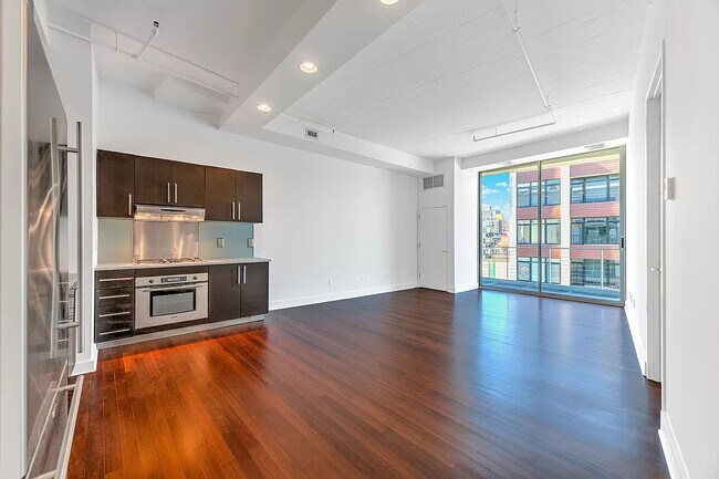 Welcome to 99 Gold Street, a premier, amenity-rich luxury building located where DUMBO meets Vinegar Hill!With its industrial chic details and luxury condo finishes, this apartment gives you the best of two New York City worlds.This spacious 1-bedroom corner unit features:-King-sized bedroom with floor-to-ceiling sliding windows-Spacious living room with balcony access-Open kitchen with marble countertops & Bosch stainless steel appliances-Beautiful contemporary bathroom-12 high ceilings with oversized windows-Beautifully polished hardwood floors-Washer & dryer in-unit and central heat & cooling-NO BROKER FEEWhat used to be a toy factory in 1919, is now a timeless converted industrial loft building. It retains its original details throughout, while also providing you with every modern convenience you could home to a plethora of amenities, such as:-A rooftop terrace with sweeping views of Manhattan-State of the art fitness center with Peloton-24-hour door-attended lobby-Laundry room-Basketball court and childrens play area-Bike storage-Parking and storage (additional cost)Located on a scenic tree-lined cobblestone street, 99 Gold is in one of New Yorks most vibrant neighborhoods. Just minutes away from your doorstep, youll find:-Brooklyn Bridge-Brooklyn Bridge Park-Main Street Park-Famous view of the Manhattan Bridge-Brooklyn Flea-Time Out Market-Some of New Yorks most renowned restaurants, like The River CafeAlso convenient for transportation-Three blocks from the F train at York Street-Short walk to the A and C trains at High Street-CitiBike Station right outside the buildingContact us for a showing and let us welcome you to your new home!