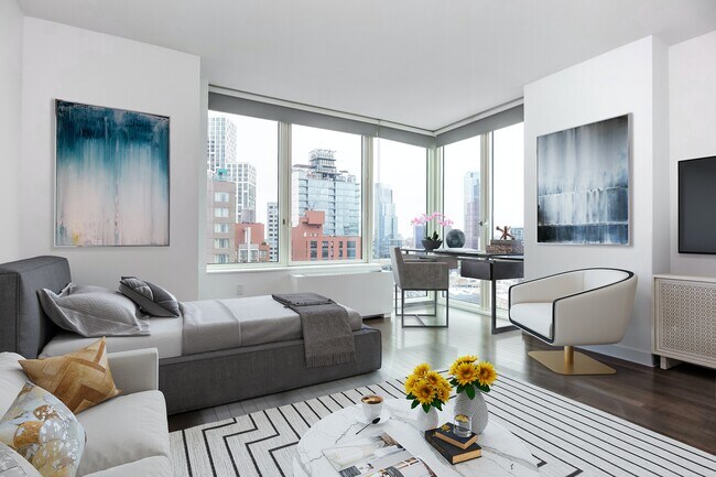 **APPLICATION ACCEPTED. NO LONGER SHOWING.** Bright corner studio apartment with W/D in the unit. Southeastern exposure. No amenity fee. No pet fee. No broker fee. 388 Bridge offers panoramic vistas of nearly all of New York City's landmarks. Providing the highest level of amenities, 388 Bridge offers a grand fully-attended lobby and a rooftop viewing terrace. Common spaces include a Lounge /Party Room, Gym, Kids Room, and 5th Floor Outdoor Terrace with BBQ grilling deck and separate children's playground. Positioned in the heart of downtown Brooklyn, the area is a nexus of culture, commerce and recreation. Adjacent neighborhoods like Brooklyn Heights, Boerum Hill, Cobble Hill, Fort Greene, and Dumbo await exploration. Easy access to A, C, B, Q, R, F, G, 2, 3, & 4, 5 trains. Photos are virtually staged, represent multiple units in the building and showcase the finishes. Brokers-CYOF.