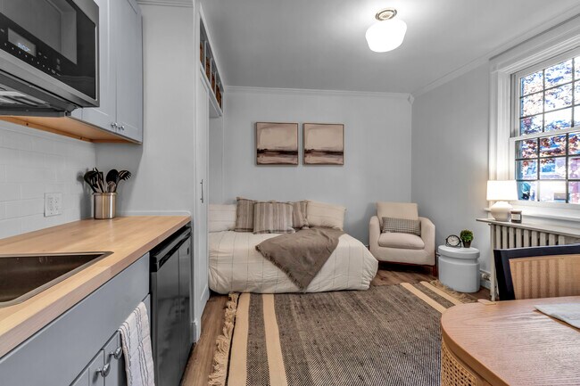 Beautifully renovated apartments in vibrant Allentown! Conveniently located within walking distance from the Buffalo Medical Campus and minutes from downtown Buffalo, D'Youville College, and the subway for quick access to the University of Buffalo. Must see with brand new appliances including a stainless steel fridge, stove top, microwave and convection oven. You'll love the space saving, full size, Murphy bed and 42" wall-mounted TV! Everything included! Utilities included: water, gas, electric, WiFi, TV service and trash removal -Cats are welcome with an additional non-refundable pet deposit -24/7 surveillance, secured access, secured mail room -Income verification, background and credit checks are required.