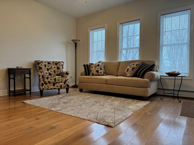 This nicely furnished apartment in Horseheads includes gas, electric, water, internet, and trash. Bedroom has carpet, large walk-in closet with skylight, ceiling fan, olympic queen size bed, dresser, night stand and flat screen TV. Bathroom has ceramic flooring and skylight. Open living room with hardwood flooring, counter height bar and two chairs. Includes gas stove, microwave, full size refrigerator, coffee maker, dishes, etc. Ceiling fan in living area, flat screen TV, leather couch and love seat. This is a second story walk-up with covered entrance and small open deck in a neighborhood setting with yard and off street parking. It doesn't have laundry. No pets. No smoking. Renters insurance required. Owner pays for gas, electric, water, internet and trash.