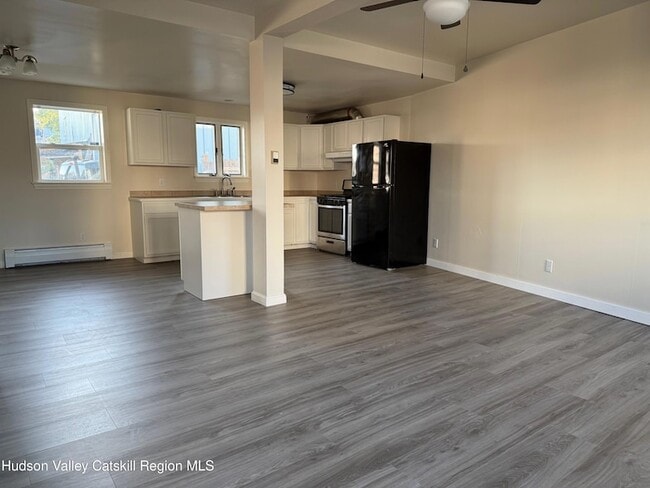 Spacious Two-Bedroom Duplex apartment - Central to Everything in Hudson. Newly renovated with ample sized rooms. First floor contains open-plan living room/kitchen with island. Two bedrooms and full bath on the second floor. Washer & Dryer included. Near Columbia Memorial Hospital and Warren Street.One off-street parking space provided. Tenant pays utilities.First month and 1-monthSecurity at Lease signing.