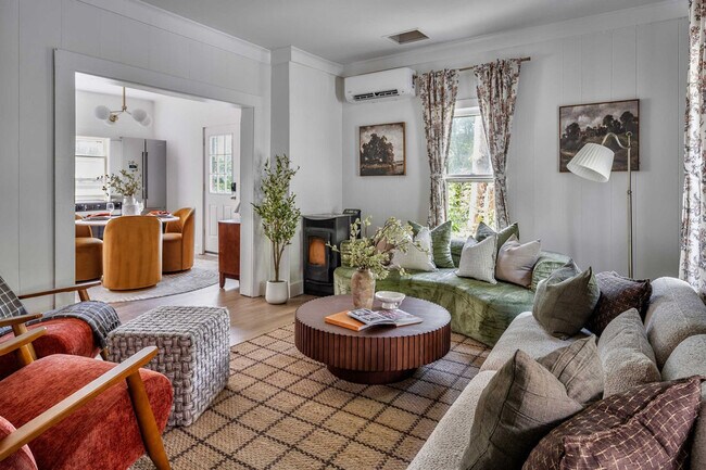 This 5-bedroom retreat is the ultimate Hudson Valley getaway with luxury finishes and upscale vibes. Located just a 10-minute walk from Hudson Village Spots, this two-level home offers a private sauna, hot tub, fire pit with twinkle lights, and a chef's kitchen. The property also features an outdoor grill and dining area, a large yard, and a studio suite, making it perfect for family and group gatherings. Experience luxury in the heart of the Hudson Valley with this upscale getaway where modern comfort meets timeless charm. The spacious retreat comfortably accommodates up to 14 guests with 5 beautifully appointed bedrooms and 2 full bathrooms. Enjoy the convenience of two kitchens, each equipped with brand-new stainless steel appliances, perfect for preparing anything from casual breakfasts to gourmet dinners. The home is designed for relaxation and indulgence, offering a warm and inviting interior with upscale finishes and thoughtful design. Parking is available in the driveway for up to 4 cars, and street parking is allowed. The property features a private sauna and hot tub for relaxation. If you're interested in a long-term stay, please reach out to inquire about availability. Ideally located near charming Hudson Valley towns, acclaimed farm-to-table restaurants, boutique shops, and scenic outdoor attractions, this property serves as a luxurious home base for your adventures. Nearby attractions include the High Falls Conservation Area, Art Omi, and Harlem Valley Rail Trail. Local dining options such as Local 111, McNan’s Variety Foods, and High Falls Pizzeria & Tap House are just a short distance away. Check-in is at 4pm and check-out is at 10am. No pets are allowed and no parties are permitted, with violations potentially resulting in immediate termination of the stay. An exterior camera is installed solely to monitor the cleaning team for quality and security purposes. Guests must be 21 years or older to book this property. A guest verification process is required within 48 hours of booking confirmation, including signing a rental agreement and providing a valid ID and matching credit card. A non-refundable $60 damage waiver is required, covering accidental damage during your stay if reported prior to check-out. The home includes a dedicated workspace, making it remote work-friendly. [SI]
