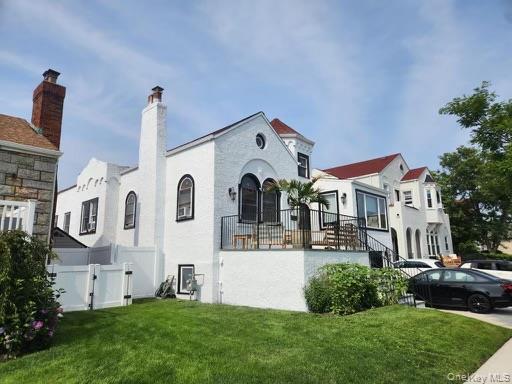 Prepare to be captivated by this exquisitely renovated Mediterranean residence,where timeless architectural charm meets modern luxury. The home greets you with stunning hardwood floors and a dramatic living room featuring vaulted ceilings,vibrant stained-glass windows,and a cozy wood-burning fireplace. Culinary enthusiasts will delight in the chef’s kitchen,elegantly appointed with granite countertops and a dedicated wet bar,while a bright and airy sunroom provides the perfect spot for morning coffee or quiet relaxation. The primary suite serves as a private sanctuary with an ensuite dual-vanity bath,and the outdoor living spaces are an entertainer's dream,featuring a charming front patio,a spacious rear deck,and a fully fenced yard. Complete with a private driveway and garage,this home is ideally situated just minutes from the beach,boardwalk,LIRR,and local shops,offering an unparalleled lifestyle of beauty,comfort,and convenience. All legal sources of funds accepted MLS ID KEY989207