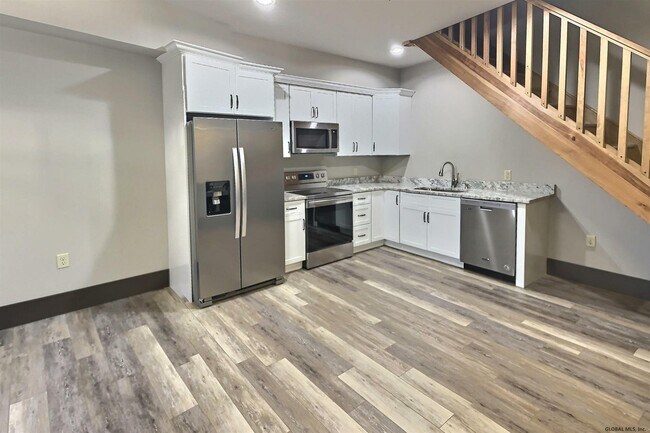 Welcome home to luxury living at its finest! this 3 bedroom, 1.5 bathroom two story unit includes Wifi and Cable! All units come with energy efficient heating and cooling with wifi thermostats, granite countertops, stainless steel appliances, w/d hookups and the unique charm of an old school house! also included is 2 community office spaces, 2 public bathrooms, a lounge, a gym, rooftop mezzanine, security system and entry plus an elevator! For additional fees use the large community space with kitchen for large gatherings, storage units, and an air B&B for guests! Pets ok and short term ask for details! Other units and layouts are available(both 2+ and 3 bedroom units). Proof of renters insurance required before occupancy