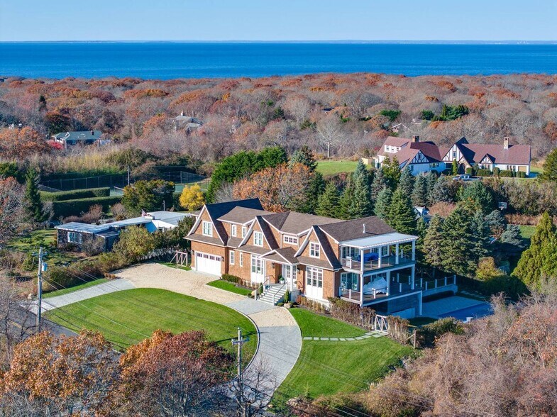 Situated on one of the highest points in Montauk with amazing views of Lake Montauk and Block Island Sound, this gorgeous 5,200 square foot home offers 6 bedrooms, 5 full and 2 half baths with a beautiful heated Gunite pool situated on a half acre of land. This new construction delivers attention to detail with high end design, finishes and state of the art systems. The grand staircase takes you to the chef's kitchen and open dining and living space with wonderful views. French doors open to a spacious outdoor deck for dining and lounging. The en-suite primary bedroom is on the upper level featuring a balcony off the bedroom facing west plus a large walk-in-closet, sitting area and stunning full bath with a stand alone tub. You will find an expansive lawn in the rear of the home that leads to the heated Gunite pool that features cascading waterfalls as well as an automatic safety cover that will maintain the heat. Additional features include an attached two car garage, fully wired smart home, high end laundry room, stunning lower level that has a open living area with direct access to the pool area, wet bar, en-suite bedroom as well as a fully equipped gym and game room area. This amazing Montauk home is centrally located near beaches, dining, shopping, and marinas. [[Rental Registration # 24-1168]]