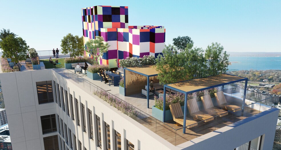 Arc House offers luxury apartments in New Rochelle near NYC, perfect for young professionals looking for a stylish yet homey place to live. Choose from spacious studios, one-, and two-bedroom apartments featuring floor-to-ceiling windows framing stunning Long Island Sound views, private balconies, chef-inspired kitchens with islands, European stainless steel appliances, spa-style baths, and in-unit laundry. Our pet-friendly community spans two full floors of amenities, including indoor and outdoor dog runs, a state-of-the-art fitness center with a dedicated gym terrace, basketball court, coworking spaces, and social lounges. Enjoy a fully landscaped rooftop with skyline views, plus an outdoor BBQ terrace ideal for relaxing or entertaining. Located in downtown New Rochelle, Arc House surrounds you with boutique dining, coffee shops, local art galleries, and waterfront parks—all just steps from the Metro-North station for a seamless 30-minute commute to Manhattan. Among the most desirable apartments in Westchester, Arc House combines city energy with suburban ease for the ultimate lifestyle. Explore life in full color at Arc House.