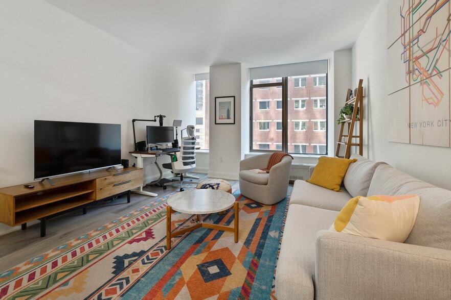 The advertised rate of $4,541/month is the lowest available price, based on a 30 day(s) stay with a move-in date of March 15, 2026. Rates vary depending on the duration of stay, season, and other parameters. For exact pricing and additional pricing components, please visit our website and enter your desired move-in and move-out dates. The rate is applicable when billed upfront; it can be higher if billed in multiple payments. Feel at home in this fully furnished studio in the heart of New York City’s Financial District, with the action of Wall Street at your doorstep. Please note that the elevators are being renovated until Spring 2026, which will result in delays. This spacious unit includes a king-size mattress, a full bathroom, a fully equipped kitchen with a breakfast bar, a smart TV, and all utilities. Amenities include a stocked kitchen with a Keurig coffee machine and pods, stainless steel appliances including a dishwasher, and an in-unit washer and dryer. The building offers 2 sets of elevators, a business center and conference rooms, a resident lounge and bar with pool tables, a rooftop sundeck with city views and BBQ grills, and a dry cleaner in the lobby. There is a 24-hour door attendant, a 24-hour Duane Reade across the street, and a Starbucks next door. Special rates are available at the on-site Complete Body Fitness Club. Stroll through Battery Park, enjoy a delicious meal by the Seaport, or indulge in high-end shopping at the Brookfield Mall, all within walking distance of this apartment. It's steps to the Seaport and riverside promenade, a 4-minute walk to Broad St. Station with the J and Z trains, a 3-minute walk to Wall & William St. and the 2 and 3 trains, a 4-minute walk to the NY Ferry Terminal, a 6-minute walk to Bowling Green Station and the 4 and 5 trains, and a 7-minute walk to Battery Park, Whitehall Terminal, and the Staten Island Ferry. Internet speeds are not guaranteed and may fluctuate based on your computer model and the router location. The A/C runs from May to October, and the heating system works from November to May; these settings are controlled by the building management. There is no parking at this property; off-site parking is available nearby. This apartment features a full home office set-up with private high-speed internet. Includes a standing desk (Uplift), a work chair (Uplift), a 34-inch ultra-wide monitor (Samsung), a microphone (Blue Yeti), a webcam (Logitech), computer speakers (Logitech), a key light, a monitor light, a green screen, a keyboard (Logitech), a mouse (Logitech), a laptop stand, and a TOTU 16-in-1 Triple Display USB-C 3.1 docking station. A laptop computer is not included. [SI]