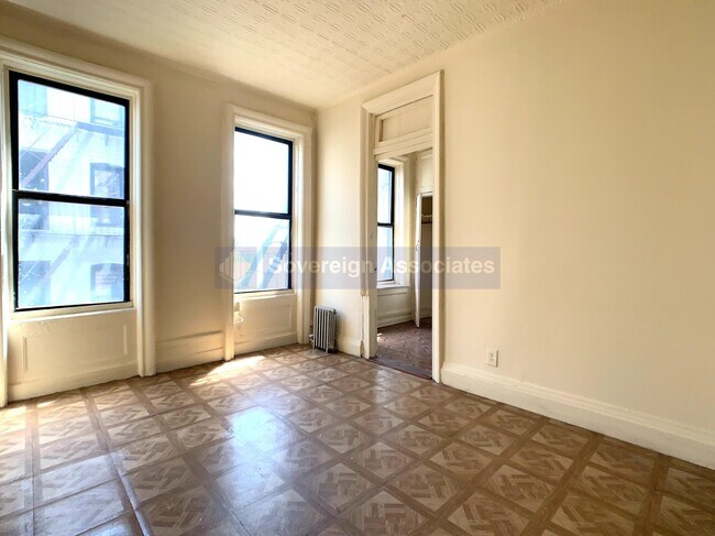 This apartment comes with a spacious living room, separate kitchen, and 3 bedrooms with their own closets. The master bed is large enough to fit a king size bed comfortably, the other two can fit a queen and still leave a good amount of space. Great restaurants, barbershops, hair salons, and clothing stores. The apartment is a walkup. There is a live in super. The apartment is close to the one train and a few block away from the A train. Sovereign Associates Inc.
