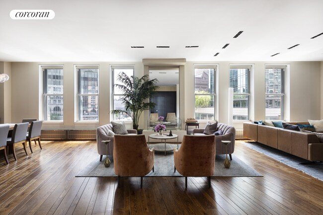 This custom designed home with four bedrooms and four full baths spans across 4,200 square feet offering gracious and stylish living in one of Greenwich Village's premier full-service condominiums.Enjoy peaceful living throughout this beautiful home thanks to 24 CitiQuiet windows on three exposures. Handsome Brazilian bamboo hardwood floors alternate narrow and wide for a striking effect while designer fixtures and recessed lighting add warm illumination throughout.The long gallery entry makes a dramatic first impression with stone detailing and rows of concealed closets. Ahead, an asymmetric archway reveals the panoramic great room surrounded by northern, eastern and southern light and Cooper Union Library views. You'll enjoy an expansive footprint for entertaining and relaxation in this 47-foot-wide space with 10-foot ceilings surrounded by 13 oversized windows.The Poggenpohl kitchen is partially enclosed by a frosted glass partition and equipped with a Bosch cooktop and oven, Viking hood and refrigerator, and a dishwasher by Miele. Serve casual meals at the spacious breakfast bar or host formal gatherings under a breathtaking Bocci chandelier in the dining area. Temperature-controlled wine storage for nearly 900 bottles keeps your favorite vintage close at hand, while a large home office and pantry/ storage closet adds convenience.Head to the luxurious master suite to find beautiful built-ins, designer wallcoverings, automatic blinds and drapes, and a huge custom walk-in closet. The en suite bathroom caters to every comfort with radiant heat floors, a towel warmer, a freestanding Waterworks soaking tub, walk-in rain shower, water closet and double vanity. A large guest bedroom in this wing offers easy access to a full guest bathroom.Meanwhile, the entire southeastern wing of the home is a smartly designed living/bedroom area. Here, a large playroom opens to two spacious bedrooms with southern views and roomy closets. Both bedrooms offer en suite baths, with one of them featuring a shower, separate tub and double sinks. Lutron lighting, zoned HVAC and an in-unit Bosch washer-dryer add effortless ease to this magnificent NoHo residence.21 Astor Place is a Romanesque Revival brick and brownstone conversion where residents enjoy 24-hour doorman service, a live-in superintendent, a state-of-the-art gym, three elevators and resident storage. Located in Greenwich Village, near Washington Square Park, Union Square and SoHo, this home is at the heart of spectacular Downtown living.