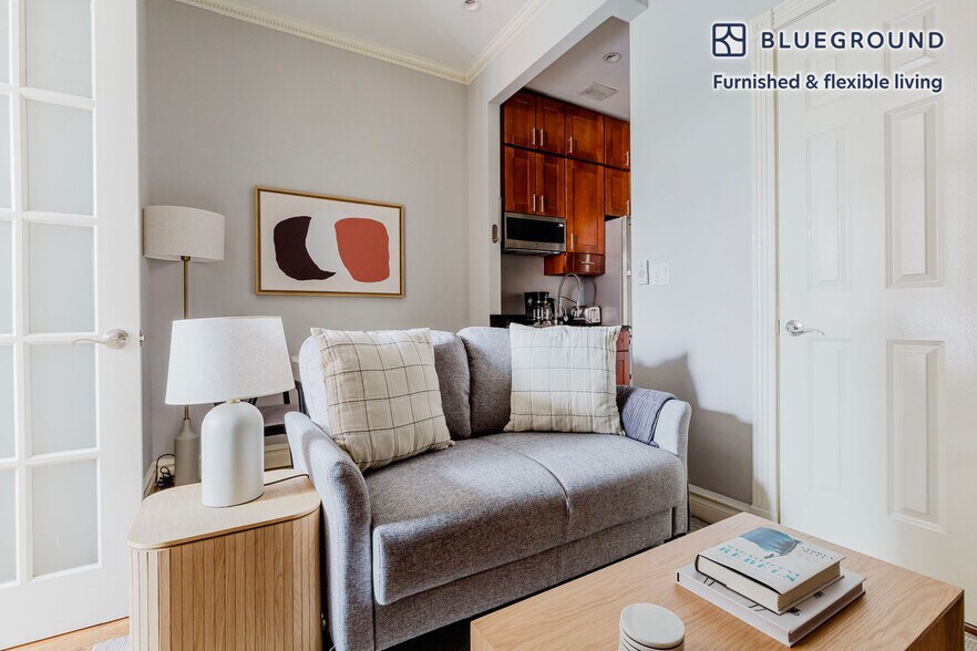 Show up and start living from day one in New York with this stylish one bedroom Blueground apartment. You’ll love coming home to this thoughtfully furnished, beautifully designed, and fully equipped West Village home. (ID #NYC1526) The advertised rate of $5,840/month is the lowest available price, based on a 9 month(s) and 11 day(s) stay with a move-in date of April 14, 2029. Rates vary depending on the duration of stay, season, and other parameters. For exact pricing and additional pricing components, please visit our website and enter your desired move-in and move-out dates. The rate is applicable when billed upfront; it can be higher if billed in multiple payments. Brokers are welcome to reach out. Were you looking for an unfurnished lease? Try Blueground instead and upgrade from unfurnished to furnished living: - Furnished at rates comparable to unfurnished - No setup or furniture costs - save thousands - Move-in ready - save time, just bring your suitcase Designed with you in mind Gorgeous furniture, fully equipped kitchen, smart TV, and a premium wireless speaker are just a few of the amenities you’ll find inside this one bedroom apartment. Ideally located in New York, you’ll find a lot to love outside as well. When you’re ready to relax, you’ll be happy to discover every Blueground bedroom comes with superior quality mattresses, fully stocked linens, and cozy towels. We handle everything so you can simply show up and start living. This apartment also offers in-apartment laundry. Sleeping arrangements Double Bed, 55in/140cm Amenities Building amenities unique to this one bedroom apartment include an on-site: - Dryer - Elevator - Washing machine - Pets allowed Arrival and ongoing support The entire apartment is yours to enjoy! Throughout your stay, you’ll have access to our Client Experience team through the Blueground App. You can schedule additional cleanings, submit maintenance requests, and view our neighborhood recommendations with just a few taps. We’ll share all details upon confirmation of your stay. Ideally Located This furnished rental is located in the West Village. Cute storefronts and some cobblestone streets give the charming neighborhood the feel of a quaint small town. Populated with shoppers, diners and art lovers. The historically artistic area has numerous piano bars, cabarets, and theaters to discover. Both Times Square and Wall Street are just 15 minutes away by subway. Other things to note This Blueground apartment has flexible lease options, allowing you to book it for one month, a year, or more. Pets are welcome, though weight limits and breed restrictions apply and may incur fees. Brokes CYOF. We take great pride in ensuring every photo displayed is shot in our own units with our actual furnishings. That said, we regularly refresh our decor and furniture arrangement, which may differ from what’s pictured. [SI]