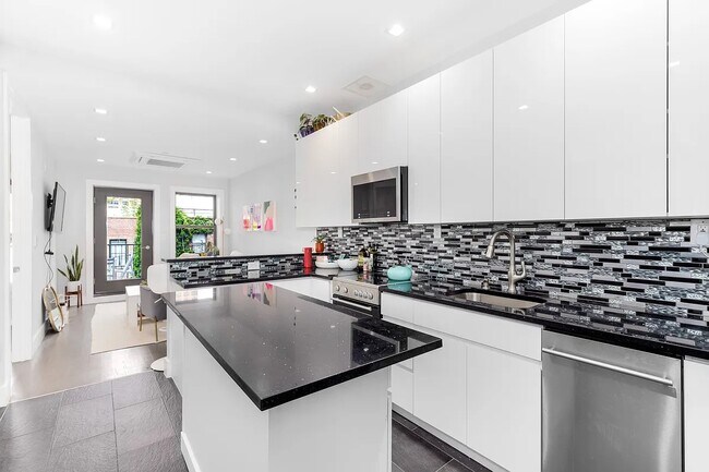 One of a kind loft in a brownstone with condo finishes in the heart of Kips Bay! Photos are of unit with the exact same layout When the doors of the private keyed elevator open directly to this floor-thru apartment with high ceilings, you will immediately be impressed by the brand new full sized open kitchen that features stainless steel appliances, a breakfast bar, and a rolling island. Just off of the living room is the entrance to a private our balcony large enough to fit a small table and chairs, which offers skyline views of The Empire State Building, Chrysler building, and Metlife Building. Also accessible to this patio through a separate door is the first of three bedrooms, which features a large walk-in closet and a built in HVAC unit, which is zoned for just this room. This walking closet features custom shelving and an overhead light. As you make your way down the hallway, past one of the two full bathrooms and the in unit washer & dryer, you are met with two south facing bedrooms. Each of these bedrooms has HVAC units that are zoned specifically for their rooms, large custom closets, and overhead lighting. The larger of the two bedrooms features a ensuite full bathroom.