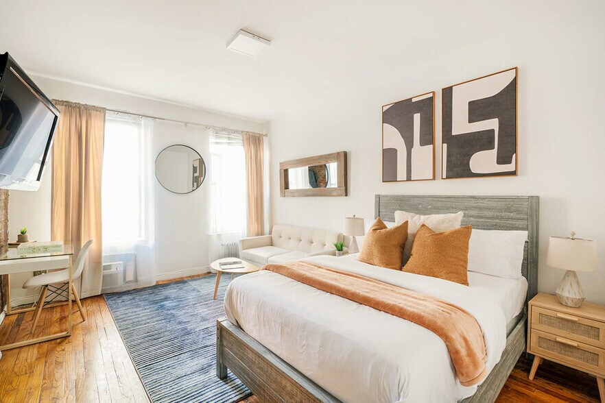 Feel at home in this oversized studio located in the Murray Hill/Gramercy area, one of the best neighborhoods in NYC. This super chic, modern, and sophisticated apartment has a New York style and vibe. It is quiet and comfortable with added touches to make your stay more enjoyable, such as a 40" flat screen TV, free Wi-Fi, linens, plush towels, and a fully stocked kitchen with a refrigerator, oven range, microwave-oven, toaster, and coffee maker. There is also a washer/dryer in the unit for your convenience, a hair dryer, and an iron/ironing board. The apartment features beautiful exposed brick walls, modern furnishings, a large closet, air conditioner, and heating. Walk to Union Square, Madison Square Park, and NYU. The area is surrounded by great restaurants, bars, and shops. 24/7 Deli's, grocery stores, and supermarkets are also nearby. The apartment is well-served by public transportation, making it easy to get to other parts of the city. The closest subway station is the 23rd St Station, which is located on the N/R/W, 4/5/6, and L lines. Several bus routes run through the area, providing additional options for getting around. The location is also walkable to many places in midtown and downtown Manhattan. [SI]