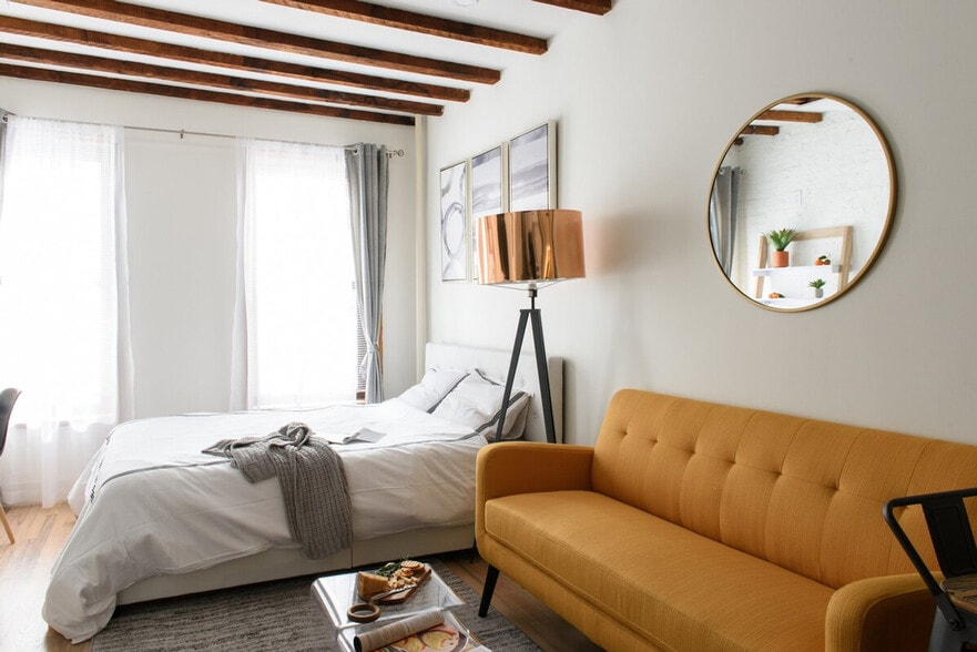Feel at home in this comfortable and convenient studio apartment, centrally located with easy access to all of NYC. The apartment is fully furnished and equipped with a comfortable queen-size bed, a fully equipped kitchen, and a washer and dryer, allowing for a comfortable and convenient stay. Additionally, the apartment has air conditioning and heating, a 40" flat screen TV, and free Wi-Fi, ensuring you have everything you need for a pleasant stay. This studio apartment is fully furnished and equipped with stylish and modern decor. The comfortable bed ensures a good night's sleep, and while the apartment is perfect for 1-2 people, an air mattress can be provided free of charge to host a third guest. The kitchen is fully equipped with all necessary appliances, including a refrigerator, oven, stove, microwave, coffee maker, and toaster, as well as utensils, dishes, and cookware. The bathroom comes with fresh towels, and the washer and dryer make it easy to do laundry during your stay. Air conditioning and heating ensure comfort regardless of the weather, while the 40" flat screen TV and free Wi-Fi offer entertainment and connectivity. An iron, ironing board, and hair dryer are also provided for your convenience. Located on East 24th St, this studio apartment is ideal for both business and leisure travelers. Situated in the vibrant and safe Gramercy Park area, known for its tree-lined streets, historic architecture, and beautiful parks, the apartment is a short walk from the famous Gramercy Park. Nearby, you'll find popular restaurants, bars, cafes, and shops offering a wide range of dining and shopping options. The apartment is also a short walk from several subway lines, making it easy to navigate the city for business or leisure. With quick access to popular tourist destinations like Times Square and the Empire State Building, this location is a great starting point for exploring NYC. New York City's heating season lasts until the end of May. Starting around mid-April, window air conditioning will be installed in the apartment. If you would like to request an earlier installation, arrangements can be made. [SI]