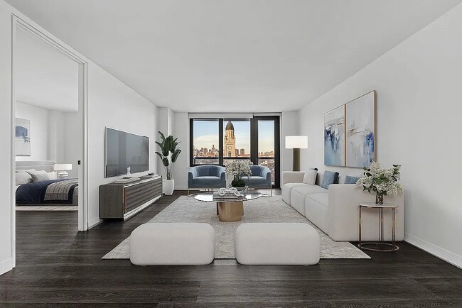 Welcome home to this bright and spacious One-bedroom in a luxury doorman building in the heart of the Lower East Side. Featuring an open layout, recent renovations, and abundant natural light, this apartment offers modern comfort with premium finishes throughout.Apartment Features: Floor-to-ceiling windows Natural hardwood strip flooring Soaring ceilings and open layout Full-size washer & dryer in-unit Stainless steel appliances with a gas range, including dishwasher and microwave Custom-finish cabinetry with soft-close features Spacious bathroom with built-in grooming station Ample closet space throughout.Building Amenities: 24-hour doorman Fitness center Billiards table Outdoor spaceStunning Rooftop Features: Outdoor screening area Surround sound Modern lounge seatingNeighborhood & Transportation: Subway access: F, M, B, D, and 6 lines Nearby restaurants & bars: Veselka, Katzs Delicatessen, Congee Village, Pardon My French Parks, Tompkins Square Park, Sara D. Roosevelt Park, East River Park