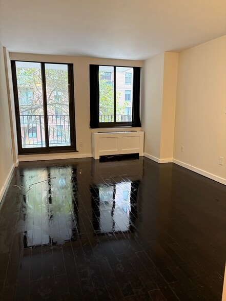 Updated modern one bedroom, one bath unit with large balcony overlooking court yard. Pass through kitchen with spacious counter top and stainless steel appliances. Dark stained hardwood flooring throughout this cozy move in ready unit. Full service building with 24 hour doorman, fitness center and laundry.