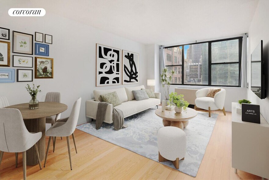 Stunning One-Bedroom in a doorman/elevator condo building. Sun-drenched apartment with walls of windows facing south.Brand new hardwood floors through-out the apartment and abundant closet spaceThe apartment entrance boasts a massive closet, enough to handle all your storage needs. The brightly lit bedroom offers an additional large closet space with great southern exposure. The kitchen features new countertops, beautiful French cabinets, and a dishwasher.The Delegate Condominium is a full-service, 24-hour luxury doorman condo, Amenities include a rooftop deck, bicycle room, laundry, and storage room.Just steps away from Grand Central easy access to trains (4, 5, 6, 7, S and Metro North).