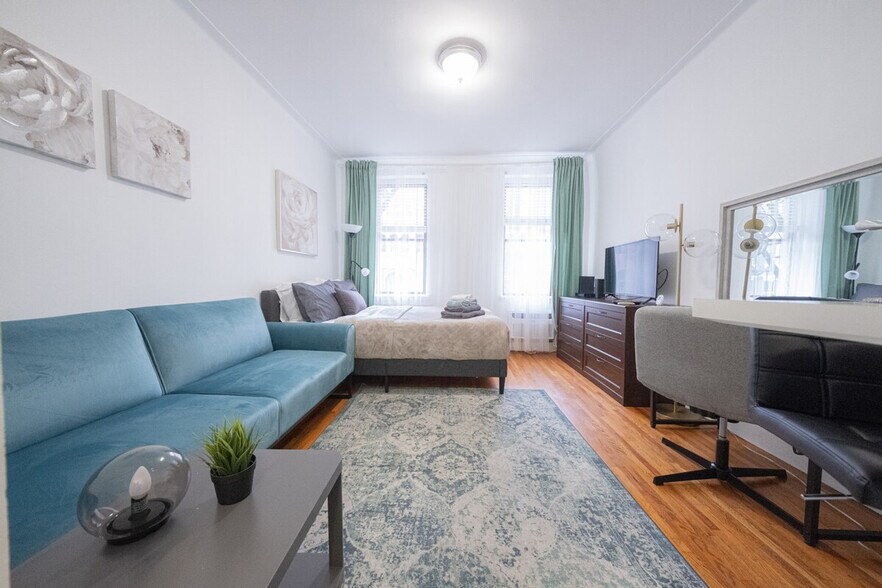 Feel at home in this centrally located, stylish, and fully furnished studio apartment situated on the second floor of a walk-up building, just two flights up. The apartment offers all necessary amenities for a comfortable stay, including Wi-Fi and all utilities such as heat, hot water, and gas/electricity. The apartment is fully furnished and features a fully equipped kitchen with a large refrigerator, stovetop, oven, NESPRESSO coffee machine, toaster, microwave, and all the utensils and cutlery you might need. Enjoy a good-sized marble bathroom with both a shower and a bathtub. The living space includes a queen-size bed, sofa, desk, mirror, and AC, with an air mattress available. Laundry facilities are conveniently located in the basement. Parking is available on the street and is free. However, alternate side parking is in effect most days, so be sure to read all signs to avoid tickets. Located in the Upper East Side, this apartment is a stone's throw away from the Q train line at 72nd Street and the 6 train line at 77th Street, making it easy to explore the city. The neighborhood is known for its posh buildings, flagship boutiques on Madison Avenue, and proximity to some of the most fantastic museums in the country. With plenty of restaurants right on the corner and a City Bike station just 200 meters away, you'll have everything you need at your fingertips. The apartment is strictly non-smoking, and smoking inside or outside will result in a $500 fine. Pets are not allowed, and luggage storage is not available on-site. Quiet hours are from 10 pm to 7 am, and the apartment must be used for vacation purposes only, with no commercial use allowed. Check-out time is 11:00 AM, and all dishes should be placed in the kitchen sink, with all trash in the trashcans. A laptop computer is not included. Children should be noted that the apartment is not child-proof or child-protected. Kindly note that a $350 refundable security deposit is required and will be collected directly by the partner after your booking is confirmed. The security deposit will be handled through direct communication with the partner and is not processed automatically. [SI]