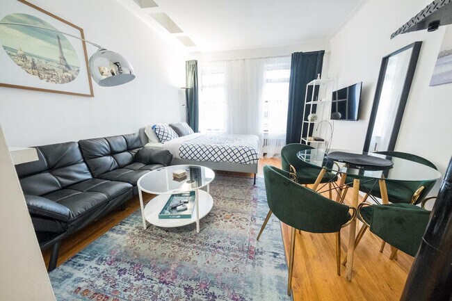The advertised rate of $11,121/month is the lowest available price, based on a 1 month(s) stay with a move-in date of June 2, 2026. Rates vary depending on the duration of stay, season, and other parameters. For exact pricing and additional pricing components, please visit our website and enter your desired move-in and move-out dates. The rate is applicable when billed upfront; it can be higher if billed in multiple payments. Welcome to this fantastic 1-bedroom duplex apartment nestled in the heart of the Upper East Side. Situated on the 4th floor of a walk-up building, this charming home offers a private roof deck and modern amenities, making it an ideal city retreat. This entire duplex apartment boasts stylish furnishings and a private roof deck for you to enjoy. The first floor features a fully equipped kitchen with a large refrigerator, coffee maker, and toaster, alongside a spacious marble bathroom with both a shower and a bathtub. The living area includes a queen-size bed, convertible leather sofa, dining table, TV, and AC. Ascend to the second floor to find another queen-size bed, desk, closet, chair, mirror, AC, and TV, with the highlight being the private roof deck. Street parking is available and free of charge. Alternate side parking regulations apply on most days, with different schedules for different streets in the neighborhood. Welcome to the Upper East Side, where timeless elegance meets vibrant city living. Nestled along the eastern edge of Central Park, this iconic neighborhood is renowned for its historic charm, cultural institutions, and luxurious amenities. Immerse yourself in culture as you stroll along Museum Mile, indulge in world-class shopping along Madison Avenue, or escape to the tranquil oasis of Central Park. The neighborhood offers a lifestyle of luxury and sophistication, with chic cafés and bistros, cultural landmarks, and a vibrant culinary scene. This is a walk-up building, and the apartment is on the 4th floor without an elevator. The apartment is not childproof and features a spiral staircase, making it unsuitable for children. Absolutely no smoking is allowed inside or outside of the house, with a fine of $500 for violations. Pets are not allowed. Luggage storage is not available, and guests are advised to use external services for luggage storage before check-in or after check-out. All guests must respect quiet hours ranging from 10 pm to 7 am. Check-out time is at 11:00 AM, and excessive cleaning charges may apply at the owner's discretion. Utilities are included unless otherwise noted, and internet service is provided with a wireless connection. Includes a desk, chair, and Wi-Fi for a comfortable work-from-home experience. Kindly note that a $350 refundable security deposit is required and will be collected directly by the partner after your booking is confirmed. The security deposit will be handled through direct communication with the partner and is not processed automatically. [SI]