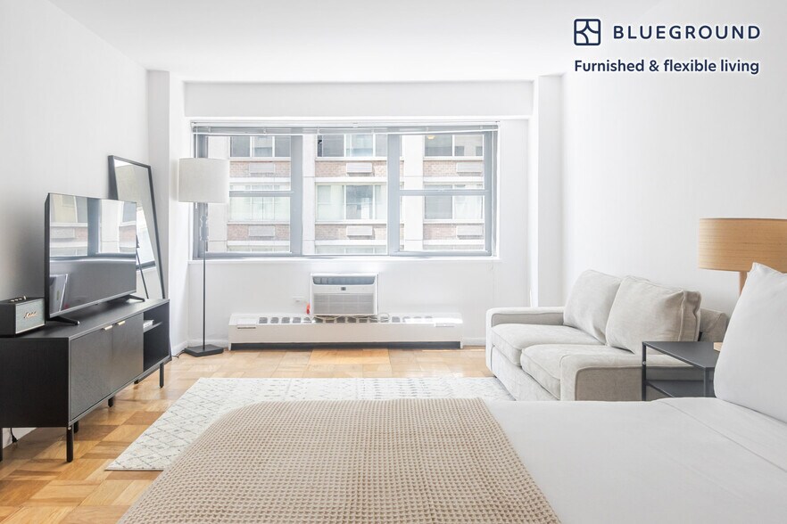 Feel at home wherever you choose to live with Blueground. You’ll love this charming Midtown East furnished studio apartment with its modern decor, fully equipped kitchen, and beautiful living room. Ideally located, you’re close to all the best that New York has to offer! (ID #NYC1953) The advertised rate of $3,580/month is the lowest available price, based on a 3 month(s) and 3 day(s) stay with a move-in date of February 27, 2026. If you’re looking for a 1-year stay, the rate is $3,540/month. Rates vary depending on the duration of stay, season, and other parameters. For exact pricing and additional pricing components, please visit our website and enter your desired move-in and move-out dates. The rate is applicable when billed upfront; it can be higher if billed in multiple payments. Brokers are welcome to reach out. Were you looking for an unfurnished lease? Try Blueground instead and upgrade from unfurnished to furnished living: - Furnished at rates comparable to unfurnished - No setup or furniture costs - save thousands - Move-in ready - save time, just bring your suitcase Designed with you in mind As with any Blueground apartment, you’ll find a thoughtfully designed space complete with beautiful furniture and a fully equipped kitchen in this studio property. And, thanks to our superior quality mattresses, luxury linens, and towels, you can relax knowing you’ll always feel comfortably at home. When you’re ready for some fun, you can take in the New York vibes or bring the entertainment to you with the premium wireless speaker or smart TV. Sleeping arrangements Queen Bed, 63in/160cm Amenities Building amenities unique to this studio apartment include an on-site: - Doorman - Elevator Arrival and ongoing support The entire apartment is yours to enjoy! Throughout your stay, you’ll have access to our Client Experience team through the Blueground App. You can schedule additional cleanings, submit maintenance requests, and view our neighborhood recommendations with just a few taps. We’ll share all details upon confirmation of your stay. Ideally Located This furnished apartment is located in Midtown East. This bustling neighborhood is home to NYC landmarks like the Empire State Building, the United Nations' headquarters, and Grand Central Station. Midtown East is also home to a thriving dining scene, with everything from humble food carts selling hotdogs to white-tablecloth restaurants with multiple Michelin stars. There are also many cultural attractions, including the Museum of Modern Art, the lovely Japan Society, the historic Morgan Library, and more. Midtown East is also home to some incredible shopping, from the international flagship stores along Fifth Avenue to Bloomingdale's, one of the city's best-loved department stores. Other things to note Building amenities may have an extra cost. This Blueground apartment has flexible lease options, allowing you to book it for two months, a year, or more. Brokes CYOF. We take great pride in ensuring every photo displayed is shot in our own units with our actual furnishings. That said, we regularly refresh our decor and furniture arrangement, which may differ from what’s pictured. [SI]