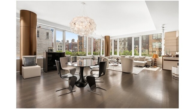 The Eklund-Gomes Team presents this exclusive 4BR CONDO in SOHO Situated in a prime SOHO location, this museum-quality four bedroom, four and a half bath residence is in mint move-in condition. Tastefully designed and impeccably executed, this light and airy 3,540sf residence with 10' 6" ceilings has the highest construction standards with high-end luxury finishes. The floorplan can best be described as a modern interpretation of a classic pre-war. A key-locked elevator opens directly into the apartment' grand entry gallery. From there, one is led to a bright loft-style living and dining room with light and views to the north, east and west through 70 linear feet of large windows which surround the space. The adjoining Chef's kitchen boasts stainless steel cabinets, large pantry spaces, Dekton countertops, a 36" Sub-Zero refrigerator, an additional 30" Sub-Zero wine cooler and beverage refrigerator, Gaggenau dishwasher, oven and cooktop with vented hood, and a Miele speed oven and microwave. Next to the open kitchen is the breakfast alcove. All the gathering spaces look out onto the charm of historic SOHO and provide the perfect venue for elegant modern entertaining. The exceptionally large north and east facing Primary Bedroom is a sanctuary of sophistication with a splendid en-suite bathroom and two generous walk-in closets. The bright windowed Primary Bathroom is adorned with large slabs of book matched selected statuary marble and has a radiant heated floor, steam shower with marble bench, and double sinks with custom vanity. There are two additional bedroom wings, thoughtfully positioned to provide an unusual degree of privacy. The first has a large bedroom facing to the east with its own full bathroom and walk-in closet. The second has a bedroom facing north and a fourth bedroom/Home office facing west with each their en-suite full bathroom. These bathrooms are also clad with book-matched marble and have radiant heated floors and custom vanities. Other features : -Elegant custom-designed powder room -Large laundry room leading to a separate service entrance to the apartment -Private service hallway leading to the unit's own storage room -Elevator also opens to a service hallway and the back entrance. - 5" wide plank quarter-sawn oak floors throughout - Five zoned central HVAC system with the public space and each bedroom separately controlled - Electric solar and blackout shades in each room - Lutron lighting system in each room - Built-in audio system with separate controls for each room - Master control switch at the entrance to the residence The residence is in a luxurious architecturally-significant building designed by renowned architects Moed de Armas and Shannon Architects (exterior) and Willliam T. Georgis (interior,) and developed by RFR Holding LLC in 2008. The seven-unit boutique condominium has a gym and a beautifully designed lobby with works by celebrated artist and attended by 24 hours concierge. Located on West Broadway overlooking the heart of the Soho Cast Iron Historic District, 350 West Broadway offers immediate access to the city's best shopping, restaurants and entertainment. The apartment is available fully furnished or unfurnished for 12 month minimum. No Short Term Rental Application & Credit Fee $950 Annual Lease Fee $300 Move-in Fee $1,000 Move-in Deposit $1,000