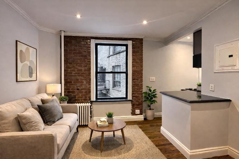 Discover the perfect blend of space and style in this beautifully updated three-bedroom apartment. Featuring hardwood floors throughout, this home provides a warm and inviting atmosphere in every room.The modern kitchen boasts custom cabinets and ample counter space, making meal preparation and entertaining a breeze. The generous living area offers plenty of room to relax, host guests, or set up a dedicated workspace. Each bedroom easily accommodates a queen-sized bed and includes ample closet space for all your storage needs. The renovated bathroom features a sleek shower/tub combo for added convenience.At Real New York, were redefining the moving experience. Our team of experts combines deep market knowledge with access to over 1,000 exclusive listings and 100% of NYCs available apartmentsfrom luxury full-service buildings to charming walk-ups.Dont miss your chance to call this exceptional three-bedroom apartment home. Schedule a tour today and experience it for yourself!Fees includes $20 application Fee, 1 months rent, and 1 month security deposit.